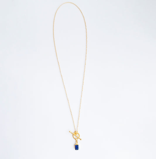 Blue Zircon Gold Gemstone Slip Chain Necklace