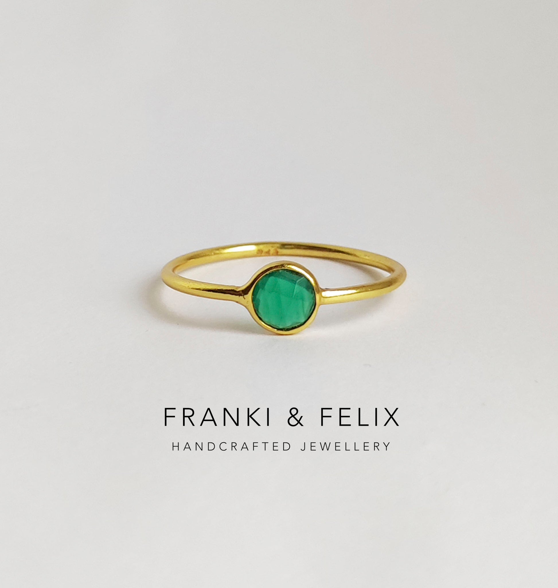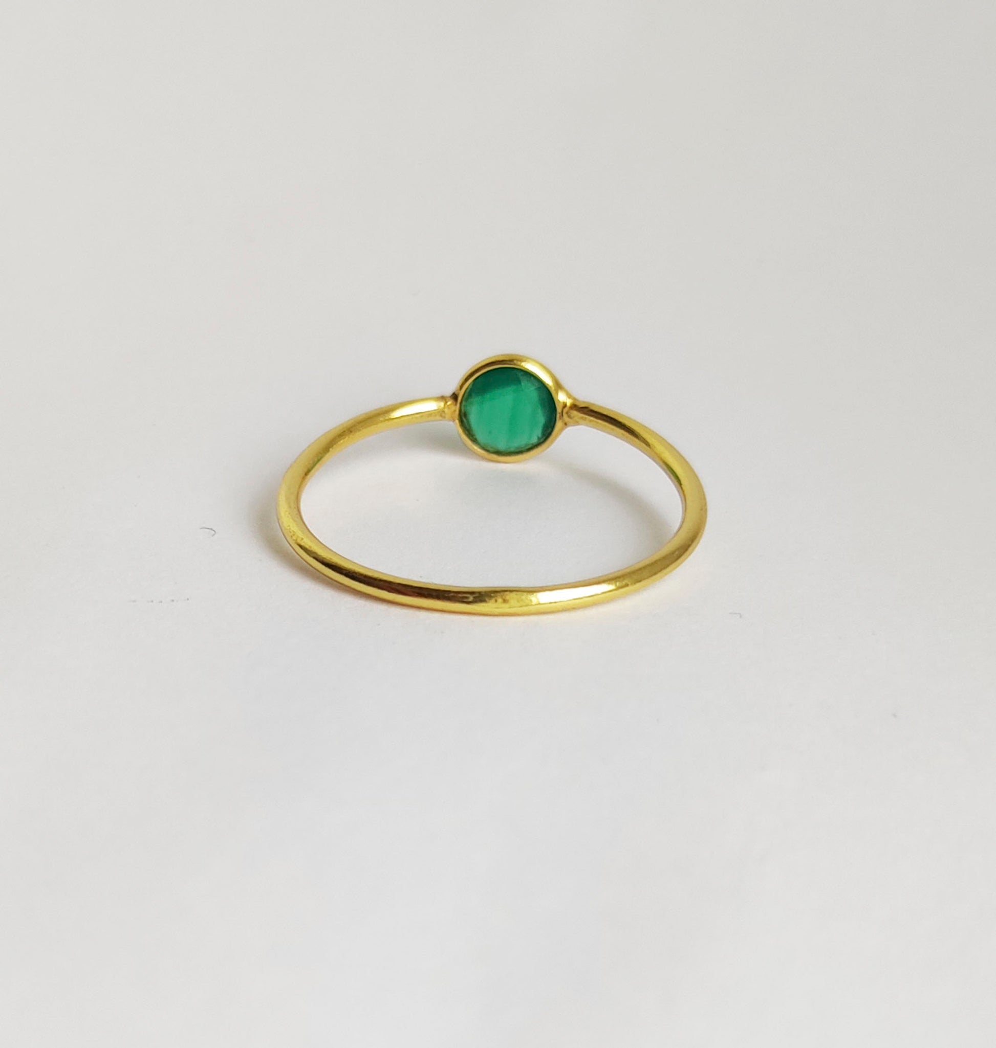 Elevate your jewelry collection with the Green Onyx dainty gold stacking ring, perfect for an engagement ring! Crafted from sterling silver 925 and finished with an 18kt gold plate, this thin, lightweight ring offers a comfortable fit for everyday wear. Featuring a vibrant green onyx stone, it's perfect for layering or wearing solo. Its simple, elegant design makes it an ideal gift for a 21st birthday or a cherished addition to your wardrobe. Enhance your style effortlessly with this timeless, versatile stacking ring.